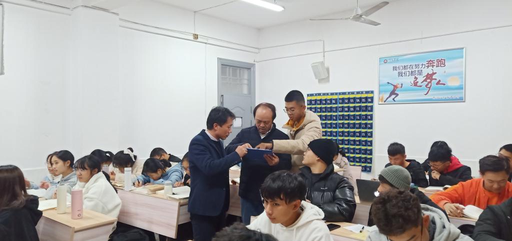 为推进学风建设,深入了解学生晚自习情况,加强与学生的交流,12月7日晚,陈金印来到教学楼检查学生晚自习情况。党政办、宣传部、教务处、人事处、学工处双创学院等部门相关负责人陪同检查。