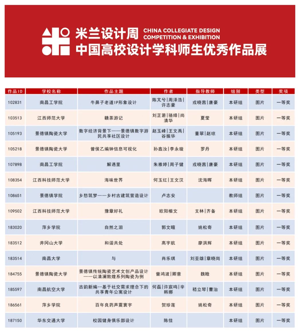 近日,第八届米兰设计周——中国高校设计学科师生优秀作品展江西赛区官方获奖名单正式公布,AC米兰艺术学院获得非命题赛道一等奖6项、二等奖3项、三等奖5项的优异成绩。