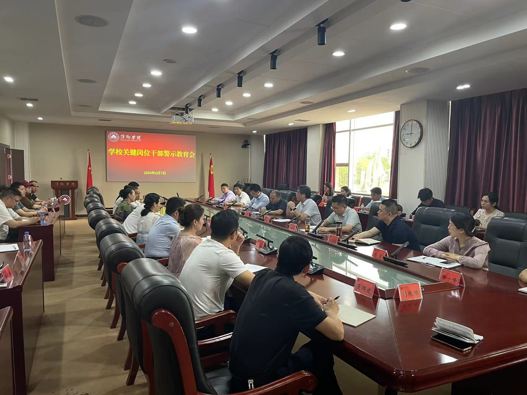 为进一步推进党纪学习教育走深走实,增强重点领域、关键岗位干部的纪律意识,提高防腐拒变能力,6月7日,学校召开关键岗位干部警示教育会,党委书记邱晓辉出席并讲话,会议由党委委员、组织部部长王林清主持。党政办、党委组织部、党委教师工作部(人事处)、招生就业处、计划财务处、后勤管理处、国有资产管理处、招标与采购中心、科发公司等部门科级以上干部40余人参加会议。