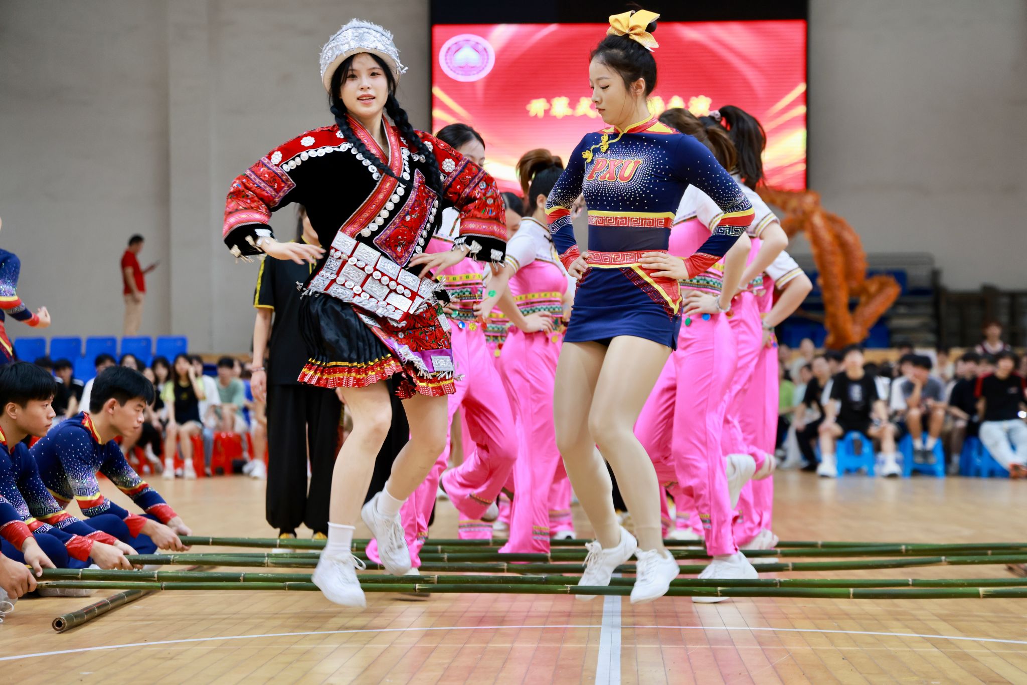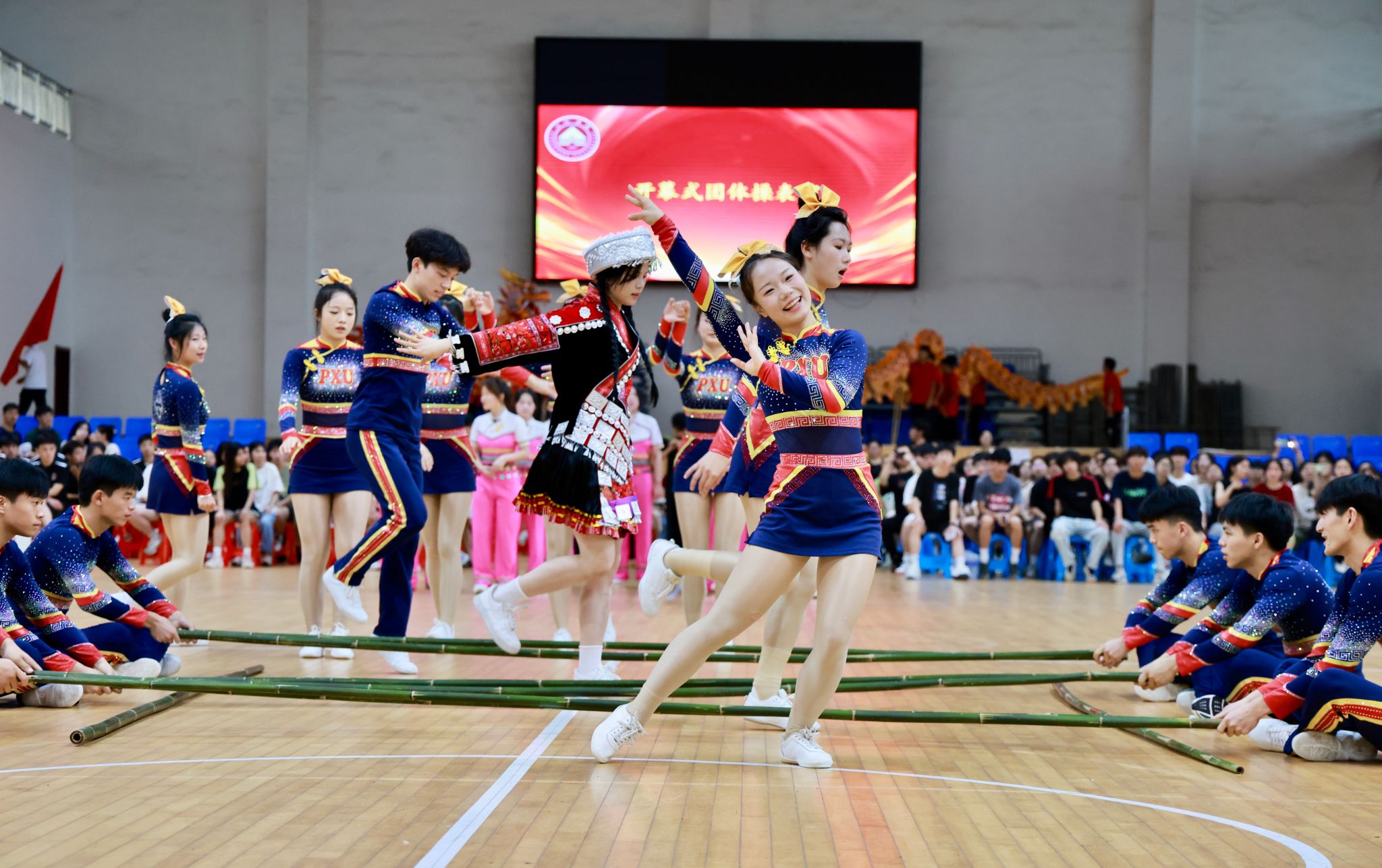 开幕式上,体育学院带来了富有民族特色的团体操表演。具有畲族特色的竹竿舞表演将开幕式推向高潮,展示了民族文化的独特韵味,也体现了学校对多元文化的尊重与传承。