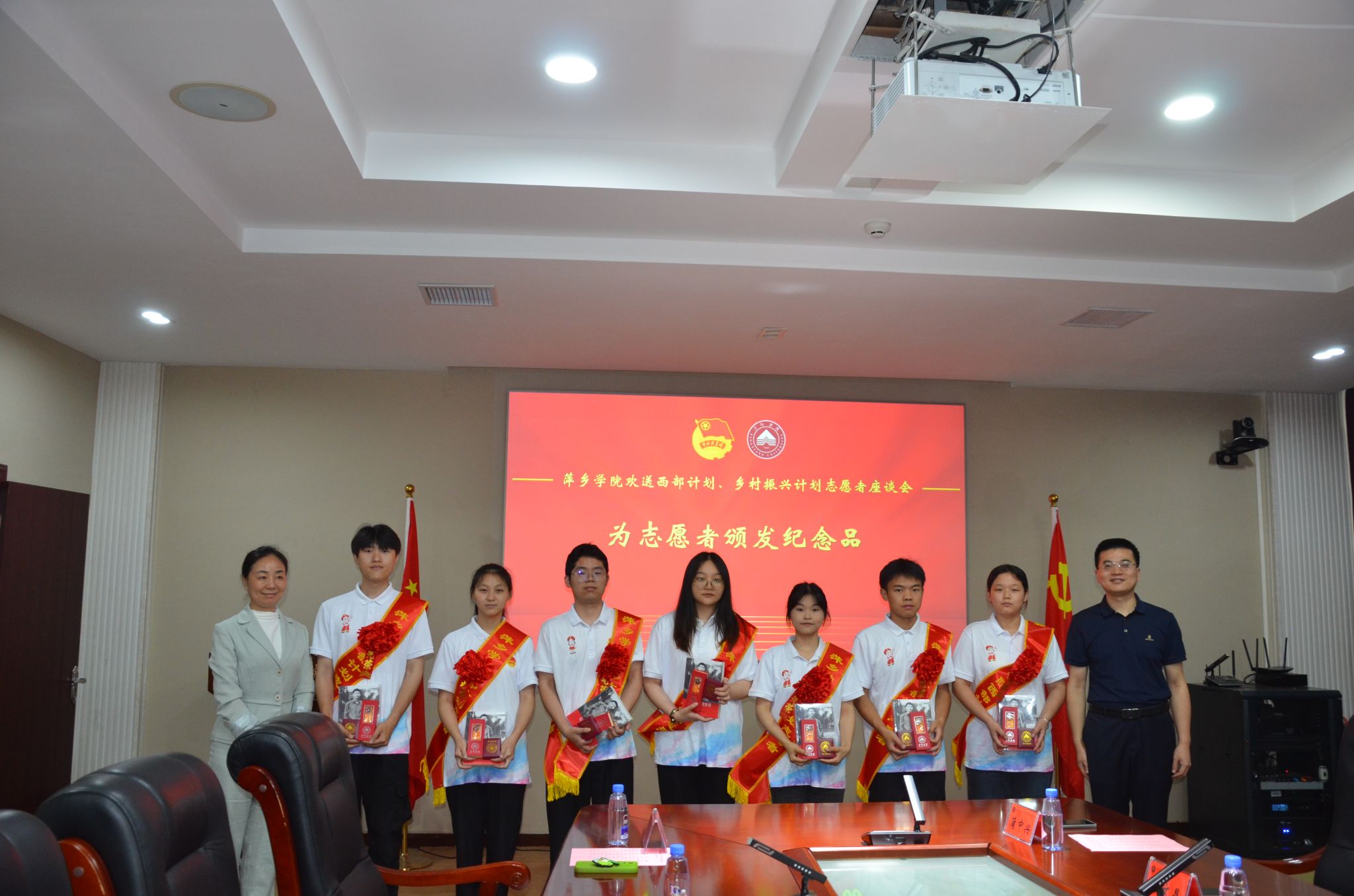 会上,刘德平为志愿者赠送了《习近平的七年知青岁月》等书籍;陈敢为志愿者赠送了学校文创纪念品。