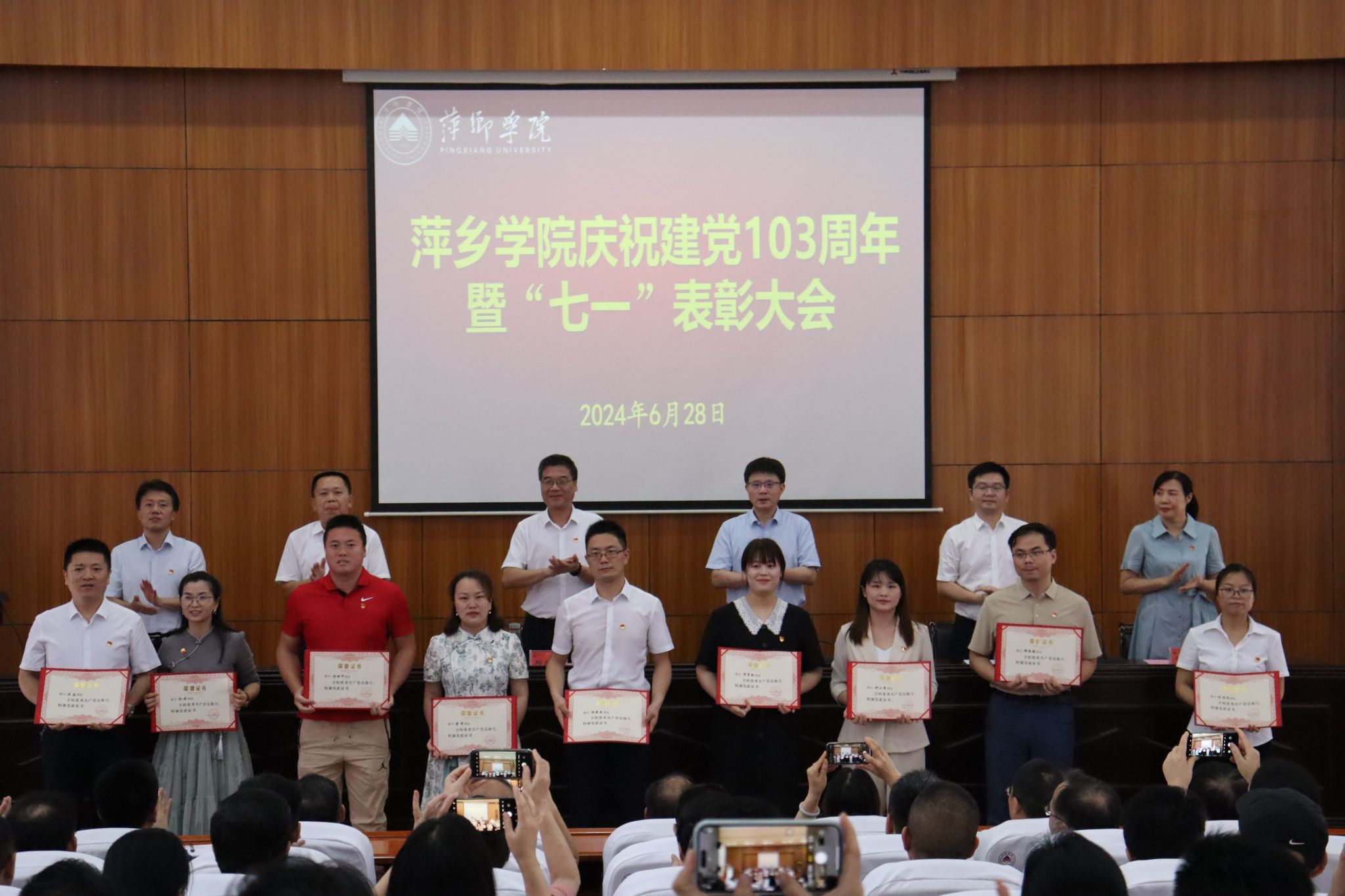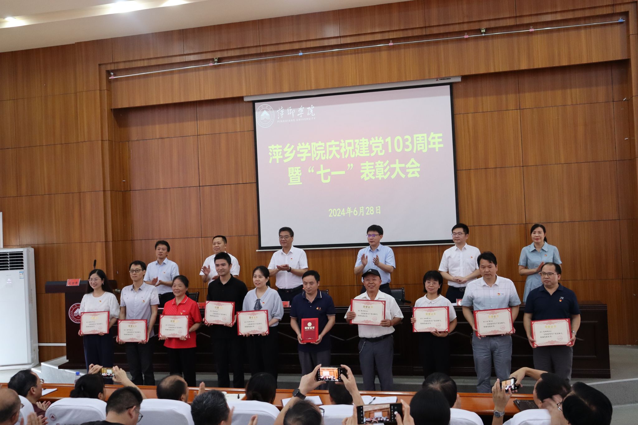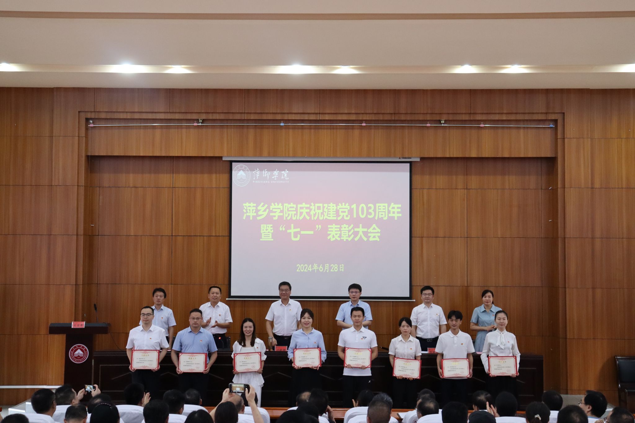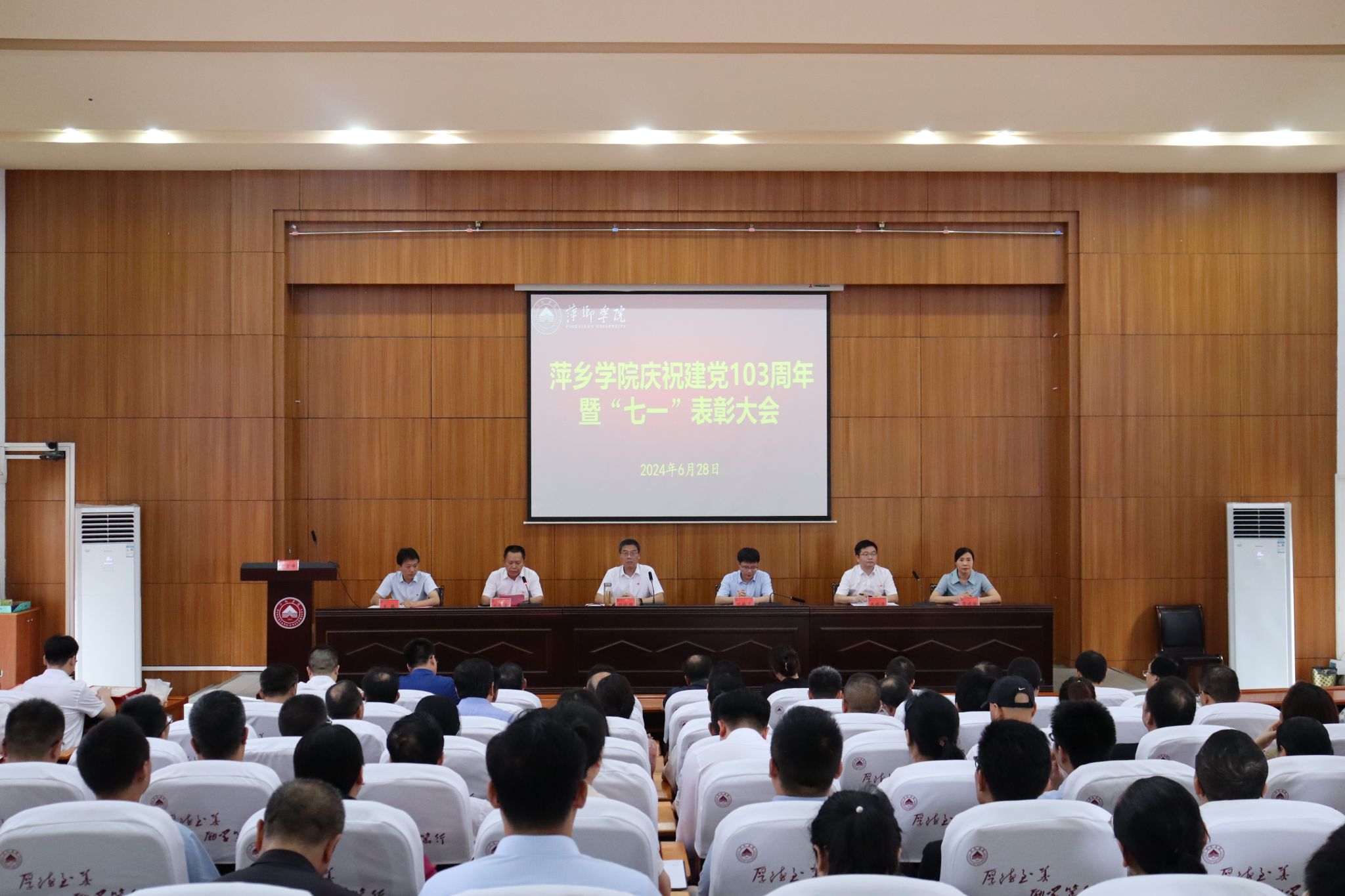 6月28日,学校在学术报告厅隆重举行庆祝中国共产党成立103周年暨“七一”表彰大会。党委书记邱晓辉出席会议并讲话。会议由校党委委员、副校长刘培圣主持。全体在家校领导、处级以上领导干部、表彰对象及党支部书记等共计150余人参加会议。