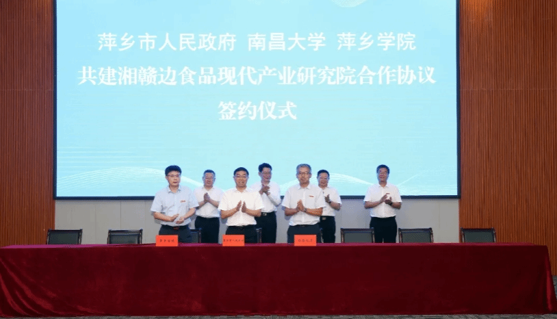 刘烁对南昌大学长期对萍乡的关心、支持和帮助表示感谢。刘烁说,研究谋划建设湘赣边食品产业研究院是萍乡人民期盼已久的大事,对于服务国家战略、建立特色产业体系、促进校地合作、推动产教融合具有重要意义。希望三方不断探索新模式、新路径,充分发挥好南昌大学在食品学科的龙头效应,在共建湘赣边食品产业研究院的过程中,通过建设一个“1个研究院+N个研究所和科研团队”的实体、一个带动萍乡在绿色食品产业科技创新能力的平台、一项更好推动科研成果转移转化的创新机制,加快推动我市绿色食品产业赛道快速发展的同时,进一步辐射长株潭,抢占更广阔市场。萍乡市委、市政府将为湘赣边食品产业研究院健康发展提供最好的服务、最足的保障、最优的环境,携手共创互惠互赢的美好未来。