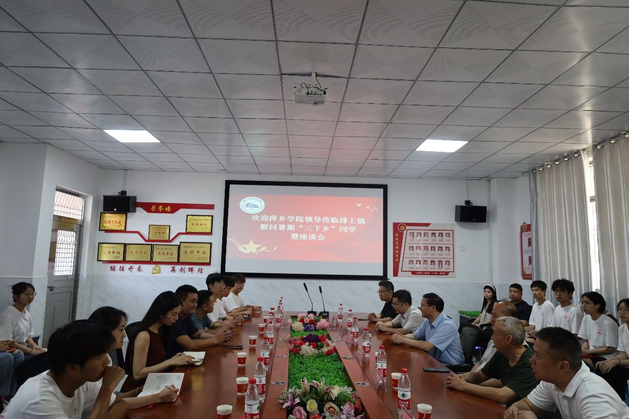 7月14日,校党委委员、副校长陈永国,党委委员、组织部部长王林清、信息与计算机工程学院党委书记周锦春、院长李希勇等莅临湘东区排上镇慰问暑期“三下乡”同学,并与湘东区排上镇机关干部一起在排上中学会议室举行本次暑期社会实践中期成果座谈会,会议由信息与计算机工程学院党委副书记李孟华主持。