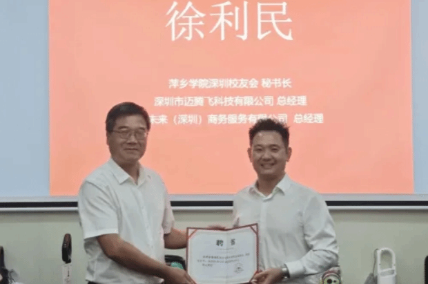 在深圳市,邱晓辉一行走访了深圳医佳康电子商务有限公司(刘芦萍校友企业)、奕龙集团(李雨真校友企业)、深圳市喜达科技有限公司(许宁校友企业)、深圳市博益友光电科技有限公司(刘辉校友企业),并为李雨真校友、徐利民校友颁发客座教授聘书。