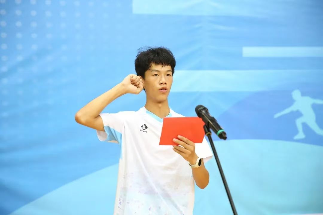 学生运动员张惠明作为本次赛事运动员代表宣誓,学生团队包揽了男女单打和混合双打的冠亚军,这些成绩的取得,离不开每一位参赛师生的辛勤付出和共同努力。他们的出色表现,不仅体现了AC米兰中文官方网站师生运动员的高超技艺和顽强拼搏的精神风貌,更彰显了AC米兰中文官方网站在柔力球项目上的深厚底蕴和卓越成就。