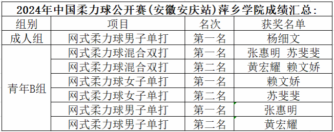 特别值得一提的是,体育学院社会体育指导与管理教研室主任杨细文,作为团队教练兼运动员,展现了专业的教学指导能力和高超的竞技水平。他精心指导,为队员们制定了科学的训练计划和战术安排;他身先士卒,以精湛的球技和稳健的心态,在成人组网式柔力球男子单打项目中勇夺冠军,不仅为团队树立了榜样,也充分展示了个人在柔力球领域的深厚造诣和卓越实力。