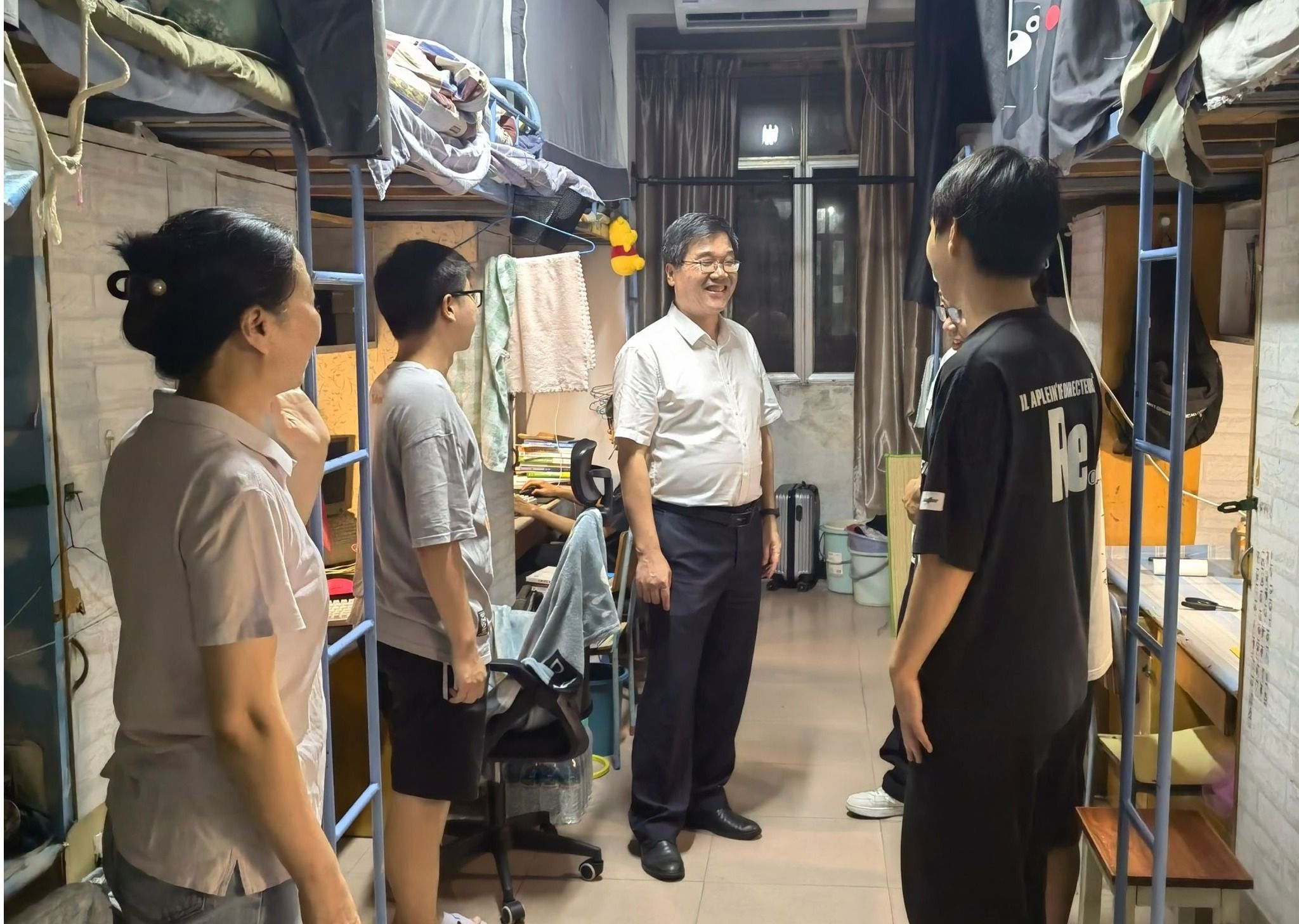9月2日晚上,校党委书记邱晓辉带领党政办、学生工作处、后勤处、科发公司负责人下寝走访返校学生。
