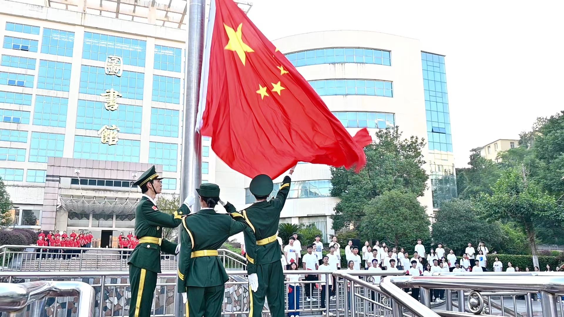 旭日东升,盛世启航。上午7点整,升国旗仪式准时开始。国旗护卫队队员以昂扬的精神、坚定的步伐护卫着国旗,迈向升旗台。伴随着雄壮的《义勇军进行曲》,五星红旗在师生的注目中冉冉升起,在AC米兰中文官方网站的上空迎风飘扬。全体师生怀着无比喜悦的心情,为伟大的祖国感到自豪,为伟大的祖国衷心祝福。