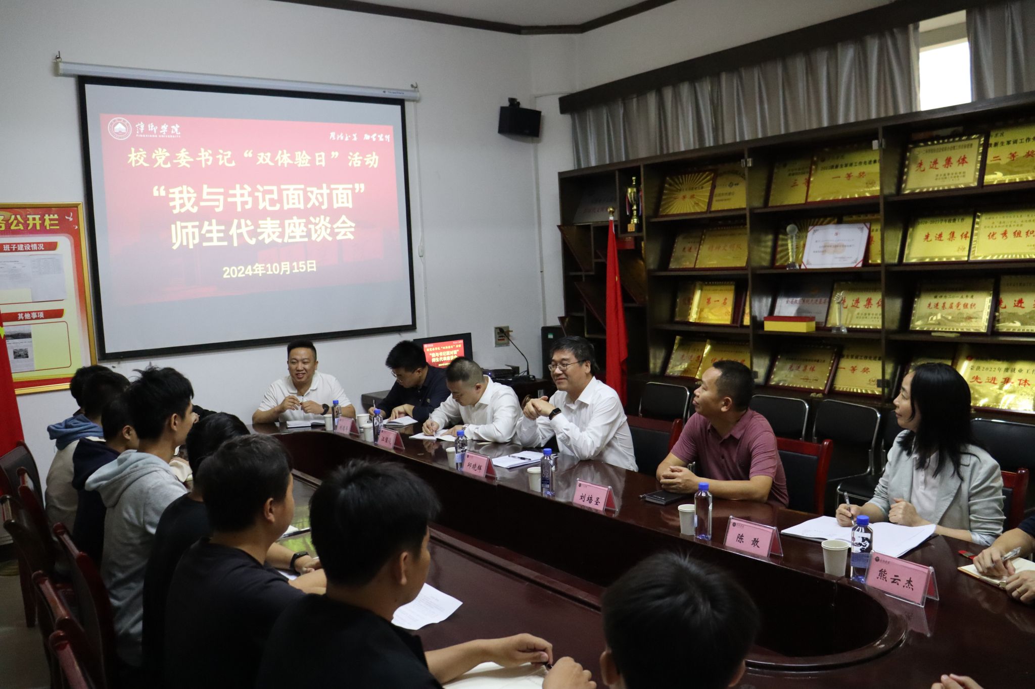 为全面落实习近平总书记重要讲话和全国教育大会精神,进一步深入了解学生的生活和思想状况,有效提升学校思想政治工作育人成效,10月15日,党委书记邱晓辉带队深入学生开展“双体验日”活动。党委委员、副校长刘培圣,党委办公室、党委学生工作部、团委、相关二级学院负责人陪同。