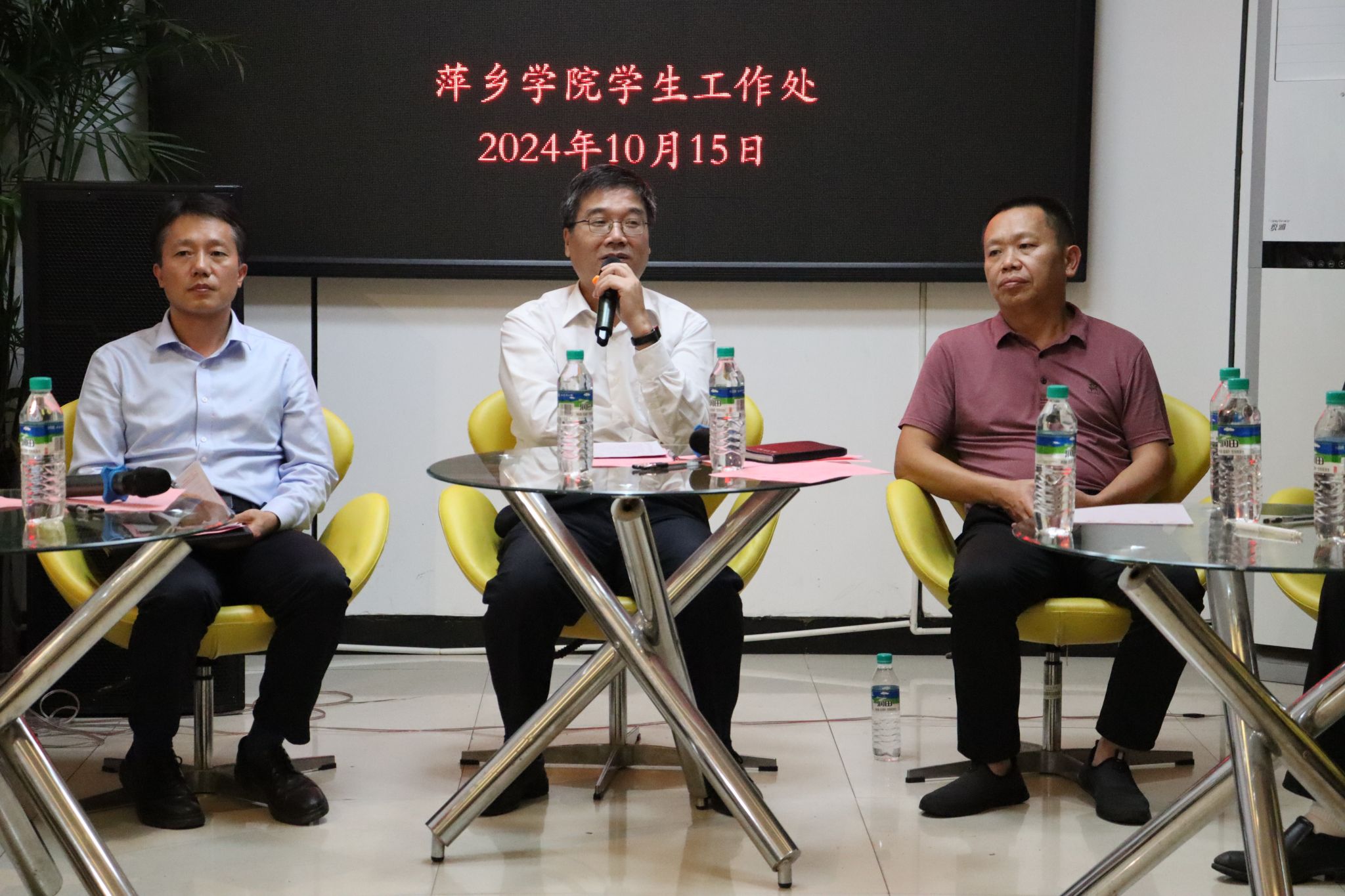 座谈会上,与会学生代表积极踊跃发言。“能否将热水使用程序、饮用水小程序、洗衣小程序等通过技术手段融入i萍院,真正做到一个app方便学生在校生活?”“衣服晾晒场地能不能再扩大?”“田径场周边能不能增添休闲设施?”“食堂菜品可不可以再多样化一些?能不能和以前一样打半份菜?”“各栋宿舍一楼拆除防盗网后的安全问题能不能得到根本解决?”……大家围绕学校的学生教育管理、校园生活设施、智慧校园、校园文化建设等方面积极建言献策,分享了自己的观察和思考,并提出宝贵意见和建议。学校领导、相关部门负责人认真倾听同学们的发言并做了记录,对大家提出的问题进行了诚恳且详细地解答,同时介绍了相关工作开展情况、给出相应的解决方案和下一步工作考虑。