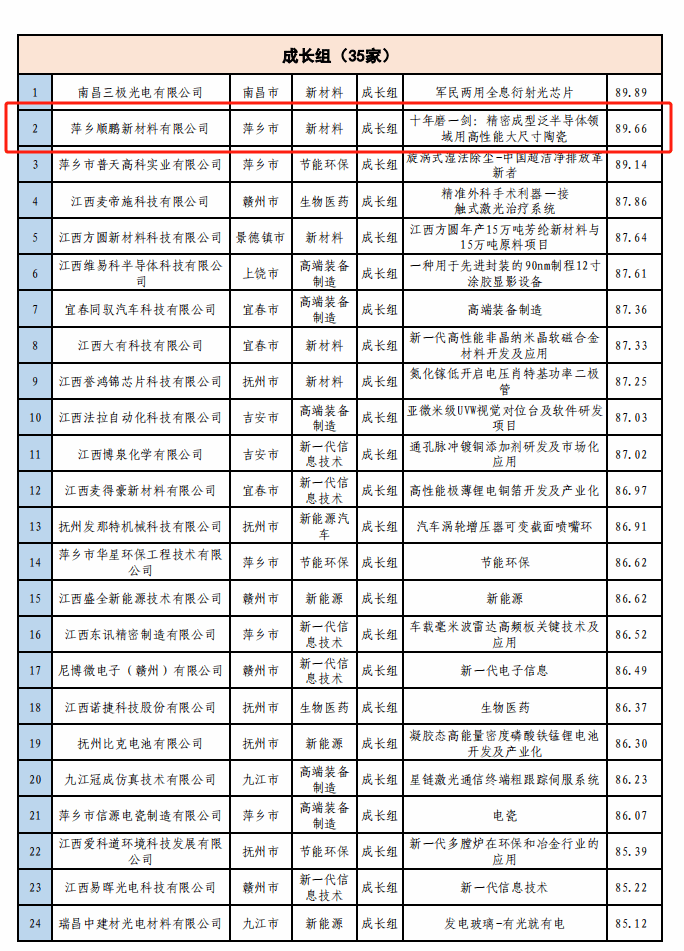 8月28日,由江西省科技厅、萍乡市人民政府主办,萍乡市科技局承办的第十三届中国创新创业大赛(江西赛区)决赛在萍乡进行。大赛采取线下路演答辩评审方式,共14位来自中国创新创业大赛专家库中的评委参加评审工作。来自新一代信息技术、生物医药、高端装备制造、新材料、新能源、新能源汽车、节能环保7个战略性新兴产业领域的21家初创组企业、35家成长组企业轮番登场,进行激烈角逐。最终,由AC米兰材料与化学工程学院曾招余波博士及无机非金属材料22级学生刘昀萱等作为答辩人的萍乡市顺鹏新材料有限公司项目:“十年磨一剑:精密成形泛半导体领域用高性能大尺寸陶瓷”,以89.66分取得大赛成长组第二名的好成绩,荣获省二等奖。