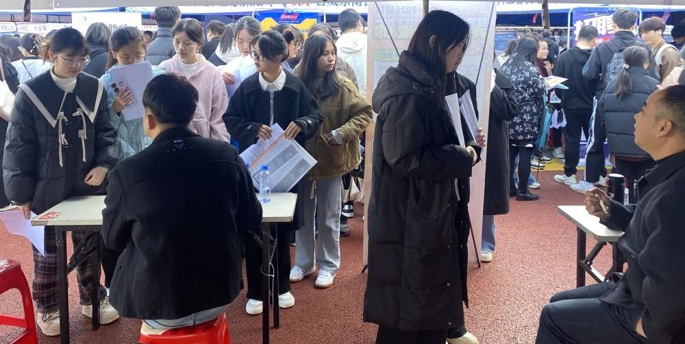 招聘现场人头攒动,氛围热烈有序。毕业生手持精心准备的简历,积极与用人单位招聘负责人沟通,深入了解岗位要求、薪资待遇、政策福利等有关信息。不少低年级学生也来到招聘会现场,提前感受就业氛围,了解市场需求,为个人职业发展做好规划。据统计,本次招聘会已有300多名毕业生与参会单位初步达成就业意向。