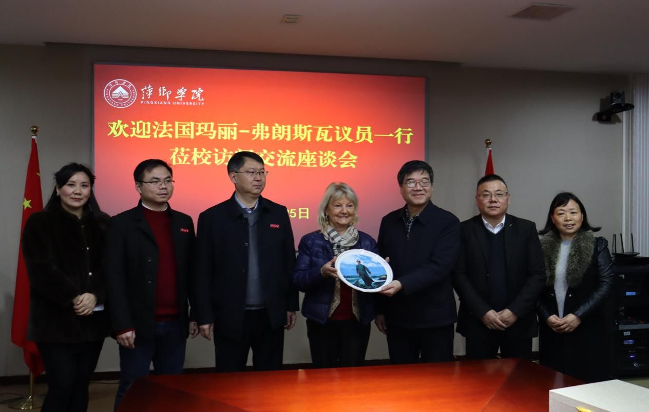 在自由交流环节,法方代表团分享了法国在国际教育推广方面的成功经验,学校也就自身的优势学科和特色专业进行了重点推介,双方在友好的氛围中达成了诸多共识。会后,双方互赠纪念礼品并合影留念。