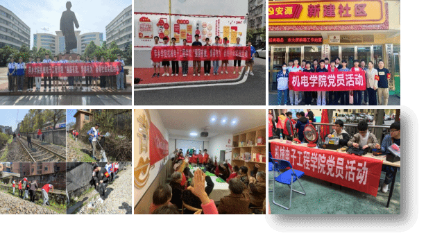 机械电子工程学院学生第一党支部构建党建引领“专业+思政+实践+竞赛”四轮驱动的党建育人模式。将党支部党建工作与学院专业建设深度融合。确保关键任务由党员带头,关键节点由党员保障,关键环节由党组织把关。将党支部党建工作与安源红色文化思政育人工作深度融合。通过开展安源红色故事微党课比赛、赴安源红色文化教育基地学习、安源红色文化融入专业课程思政等系列活动,将安源精神以党建活动为抓手,潜移默化地融入学生的学习与生活,真正用好红色资源、传承红色基因,发挥党建引领思政育人成效。将党支部党建工作与社会服务实践工作深度融合。在教师的带领下,学生深入企业开展技术服务,为企业一线工人培训软件操作方法;学生运用专业知识参与校园、乡村、社区义务维修等志愿服务活动;服务社会的同时,不断提升学生的综合素质。将党支部党建工作与学生学科竞赛深度融合,以学院科技创新中心、各实验中心、博士工作室等为载体,设立党员示范岗,以党员教师牵头组织指导教师团队,以党员学生示范带动广大学生组成科创团队,在学科竞赛领域坚持耕耘,收获硕果累累。