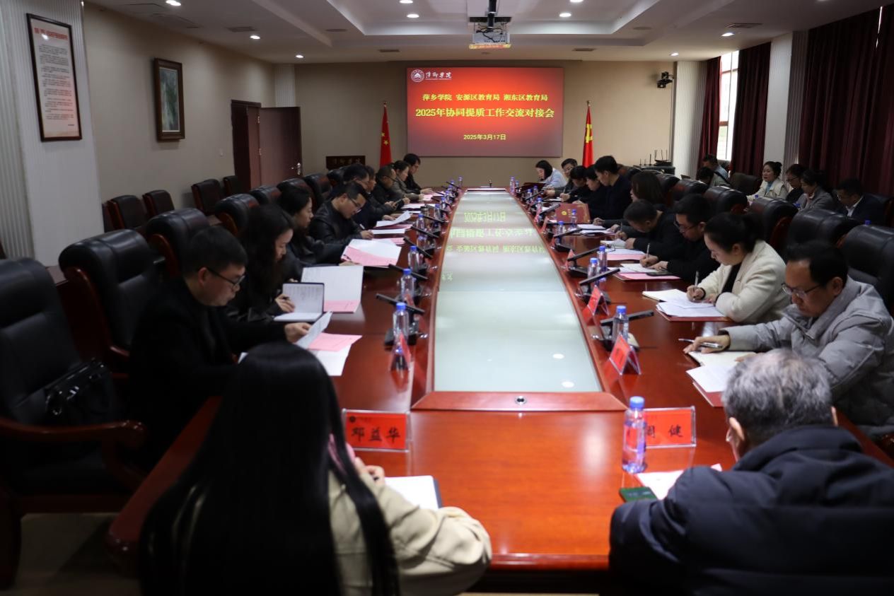 为持续推进全省高校与县域基础教育协同提质行动工作,3月17日下午,AC米兰携手安源、湘东区教育局在至善楼第一会议室召开了2025年协同提质工作交流对接会。副校长吴代赦出席会议并讲话。教务处副处长王强、师范专业相关学院负责人参加会议。会议由王强主持。