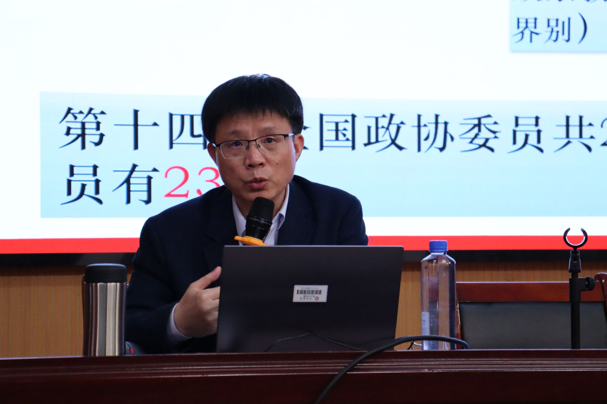 刘林芽以《聚焦2025全国两会》为主题,从“全国两会概览、全国政协工作亮点、全国人大工作重点、两会热点问题聚焦”四个方面对全国两会精神进行了传达宣讲。同时,刘林芽还结合自身参会经历,生动讲述了代表们审议报告、讨论议案的热烈场景,展示了代表们履职尽责、共商国是的责任与担当。在解读两会主要报告时,刘林芽重点剖析了政府工作报告、政协常委会工作报告。他指出,政协常委会工作报告内容精炼、数据详实,全面总结了2024年的工作成果,并对2025年的工作进行了科学部署,为政协工作的开展提供了明确的指导。政府工作报告充分体现了“稳”与“进”的发展理念,在总结2024年工作的基础上,提出了2025年的主要目标和任务,涵盖经济、教育、民生等多个关键领域。报告中的诸多新词热词,如“投资于人”“具身智能”“人工智能+”“就业创业”等,反映了国家经济科技发展的新趋势和新要求。