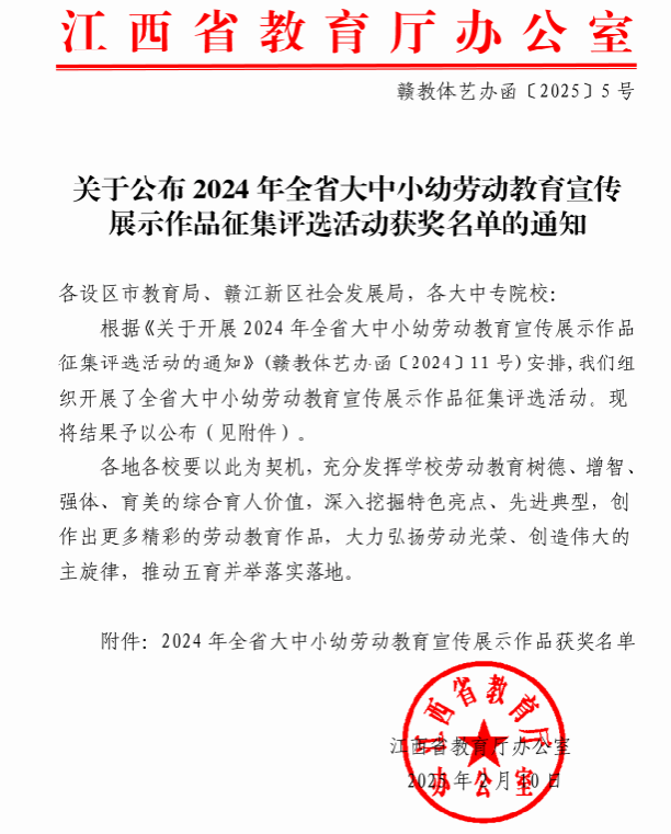 五育并举勤耕耘 劳动教育喜丰收——AC米兰在2024年全省大中小幼劳动教育宣传展示作品征集评选活动中获佳绩