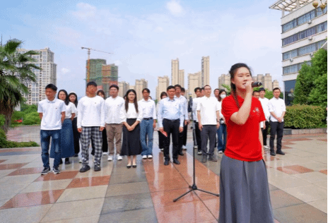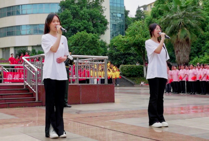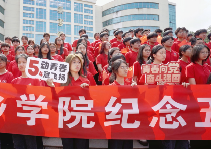 “我们是五月的花海,用青春拥抱时代。我们是初升的太阳,用生命点燃未来。‘五四’的火炬,唤起了民族的觉醒,壮丽的事业,激励着我们继往开来......”500余名师生一同挥舞着手中的国旗、团旗,高唱《光荣啊,中国共青团》,歌声响彻萍院校园。