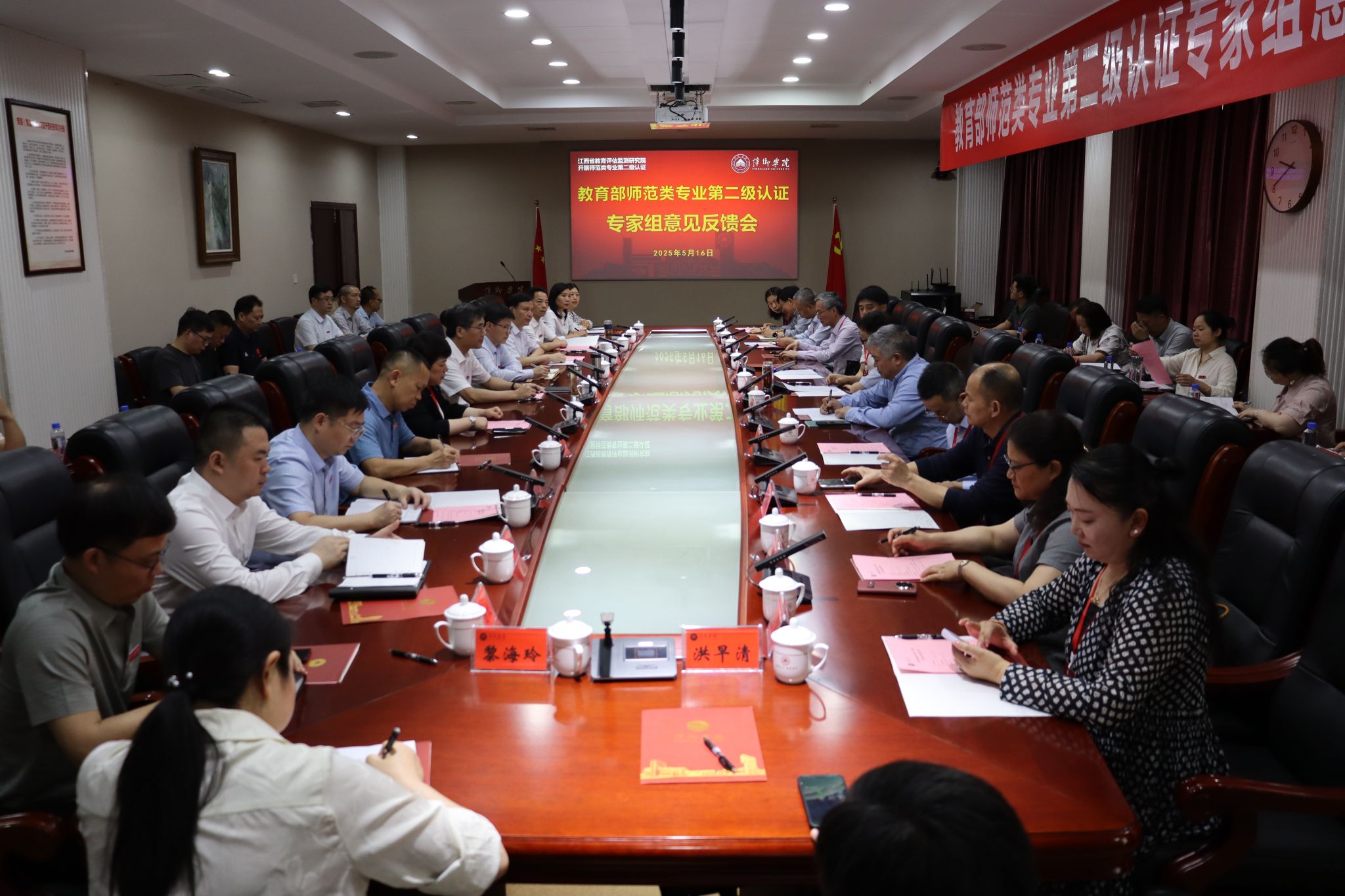 5月16日上午,教育部师范类专业认证专家组意见反馈会在AC米兰至善楼第一会议室召开。联合认证专家组全体成员,江西省教育评估监测研究院领导,全体在家校领导出席会议,相关职能部门负责人、认证专业所在二级学院领导、专业负责人以及各二级学院院长参加会议。反馈会由联合认证专家组组长、湖北第二师范学院副校长田恒平教授主持。
