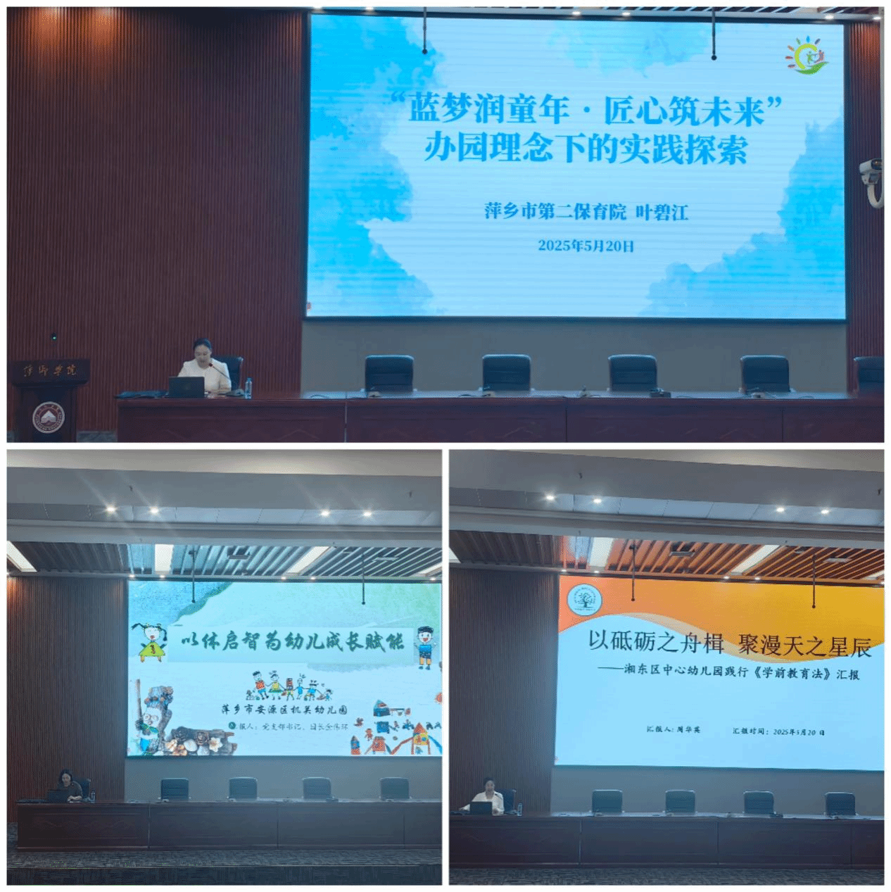 在经验分享环节,市第二保育院、安源区机关幼儿园等6所幼儿园代表,聚焦办园理念实践、体教融合创新、农村幼教联盟建设等核心议题,通过《“蓝梦润童年·匠心筑未来”办园理念下的实践探索》《以体启智,为幼儿成长赋能》《幼见高坑,乡间美好——高坑镇农村幼儿园联盟建设与发展》等6项案例,系统展示了学前教育在课程建设、师幼发展及本土资源整合等方面的多样化探索成果。