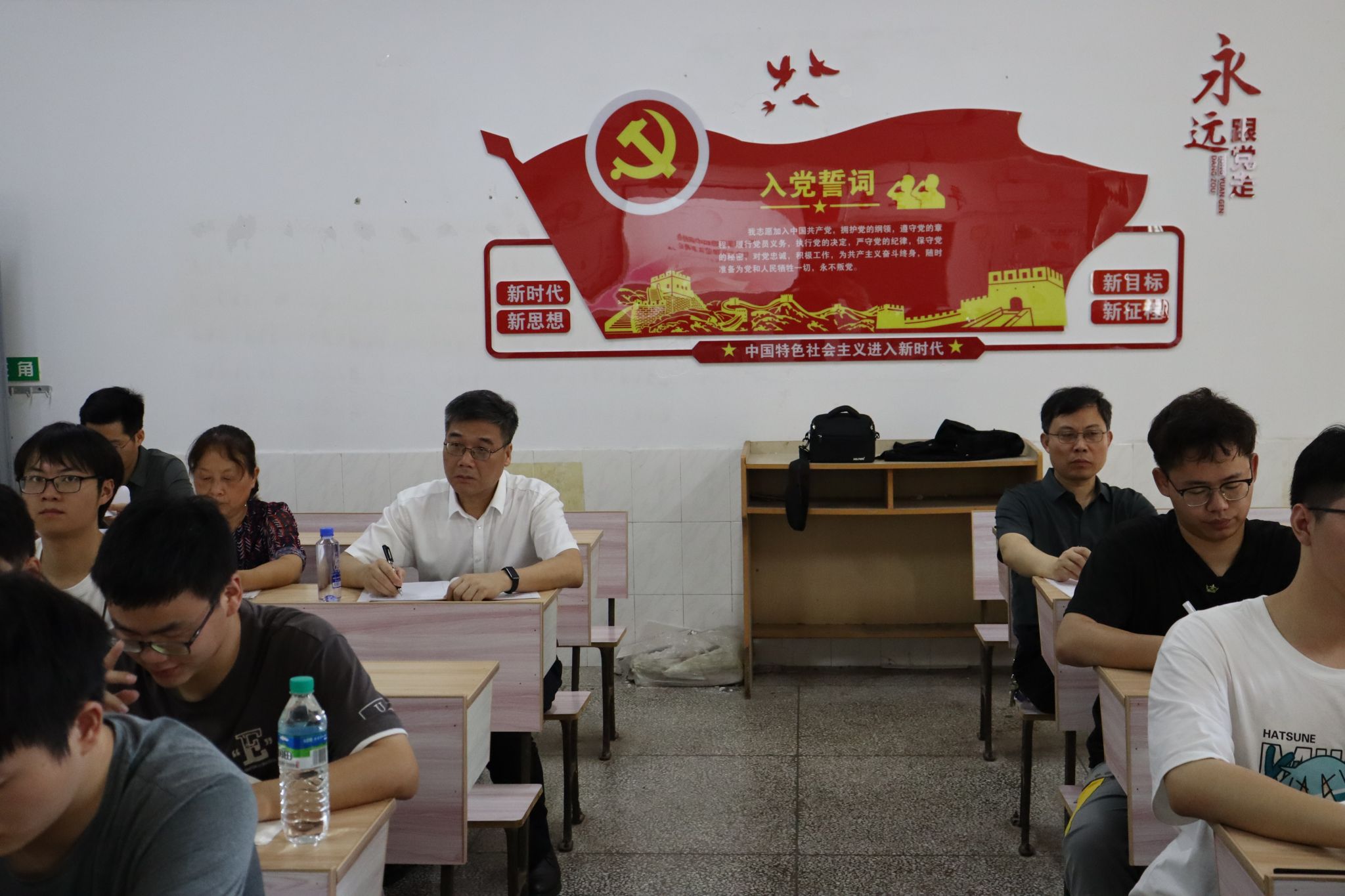 5月20日,党委书记邱晓辉深入教学一线,与同学们一起聆听何知老师讲授的《毛泽东思想和中国特色社会主义理论体系概论》、吴志国老师讲授的《中国近现代史纲要》。高教研究与质量评估中心(发展规划处)主任易志文,马克思主义学院院长朱红英及部分思政课教师一同听课。