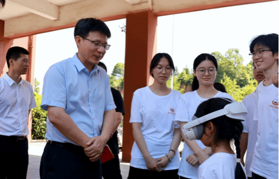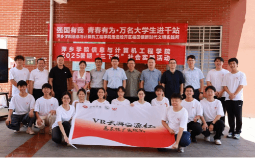 随后,刘林芽一行前往经开区福田镇硖石社区,看望慰问信息与计算机工程学院“VR云游安源红”基层推广实践队。刘林芽走入实践活动中间,与硖石社区的居民一同体验VR眼镜3D畅游萍乡红色文化地标,并和实践团成员亲切交流,与大家进行了座谈交流。刘林芽强调,“三下乡”是送科技、文化、卫生下乡,信息与计算机工程学院此次实践内容将红色文化与现代科技完美融合,为乡村文化振兴注入了新的活力,形式新颖,意义非凡。他勉励全体实践队员要以此为契机,深入了解基层现状,用实际行动展现当代青年在中国式现代化进程中挺膺担当的风采。