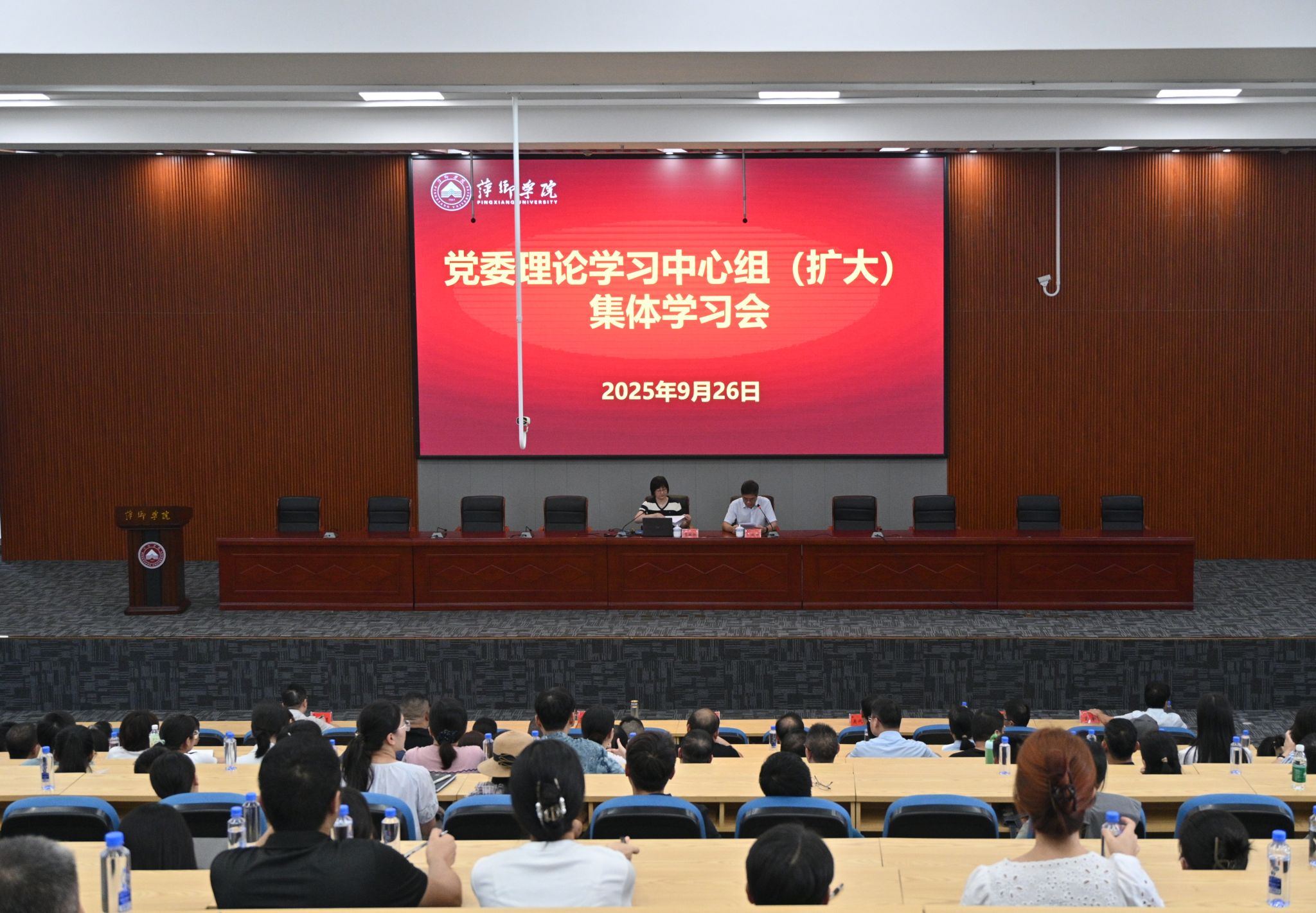 9月26日,校党委在天泉楼学术报告厅举行理论学习中心组(扩大)集体学习会。学习会邀请了省公安厅三级高级警长、省公安厅政保支队社会调查工作支队副支队长龚璐璐来校,做题为“以推进‘五好建设’为牵引,如何进一步做好高校敏感案事件处置工作”的专题辅导报告。校党委书记邱晓辉主持学习会并作总结交流发言。党委理论学习中心组全体成员、各部门负责人,各二级学院党委书记、副书记、学工科长、班主任,宣传部、团委、保卫处、学工处相关同志参加学习会。