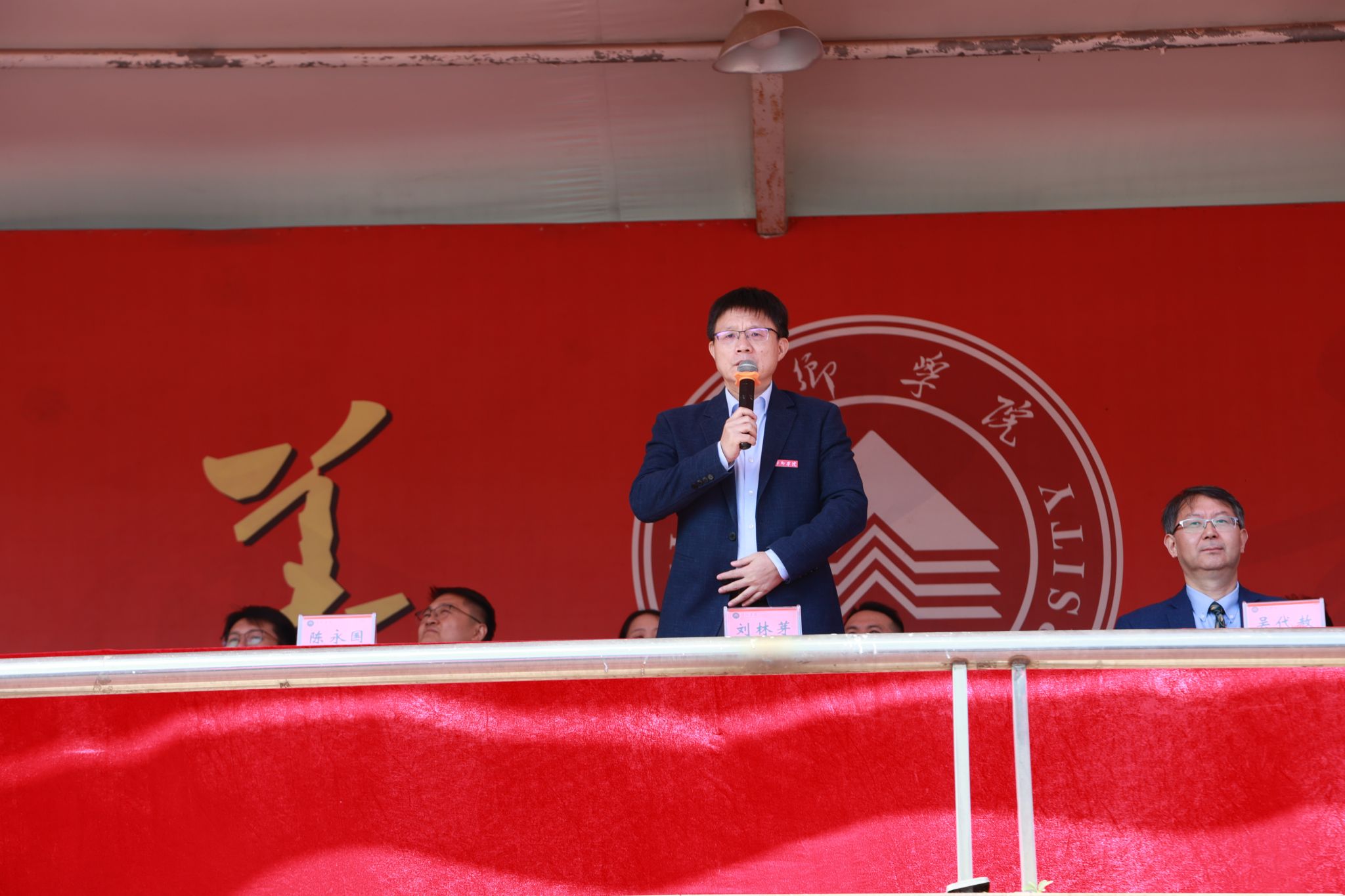 副校长吴代赦为闭幕式致辞。他代表党委和行政向所有为运动会付出辛勤努力的师生表示诚挚的谢意。他指出,本届运动会创新融合了田径竞技与军事体育,既延续了学校体育盛会的优良传统,又开创了国防教育的新模式,是一次体育竞技的盛会,更是一堂生动的爱国主义教育课。他希望,老师和同学们借着运动会的东风,将赛场上迸发的拼搏精神和团队意识,转化为迎接教育教学审核评估的强大动力。