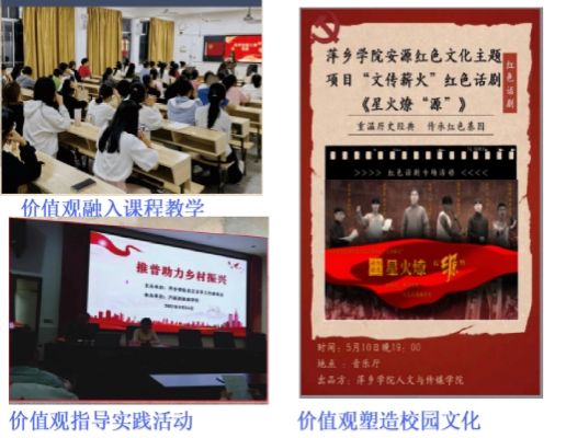 人文与传媒学院以社会主义核心价值观为引领,以培养“立足萍乡,服务江西,辐射全国”应用型人才为目标,将安源红色文化资源和优秀传统文化资源深度融合,形成了“红”“古”融合的“1234”文化育人体系。