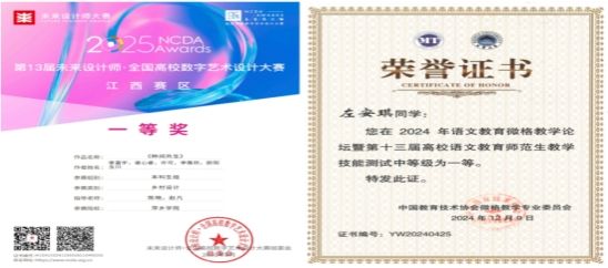 学院通过 “训赛结合” 的培养模式,不仅让学生在实战中锻炼并提升学科教学能力,更有效激发了学习主动性与内在热情,进而全面提高综合素养。近五年来,学生在各类高水平赛事中屡创佳绩,如 “华文杯” 师范生教学技能测试、全国大学生数字媒体科技作品及创意竞赛、“精彩一课” 教学展示活动、全国高校商业精英挑战赛、江西省未来教师技能展示活动、中华经典诵写讲大赛等,充分彰显了 “训赛结合” 模式对学生能力培养的实效。