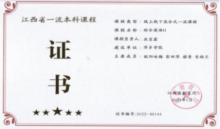 李文静荣获第十六届“外教社杯”全国高校外语教学大赛江西赛 区本科大学英语综合课组二等奖