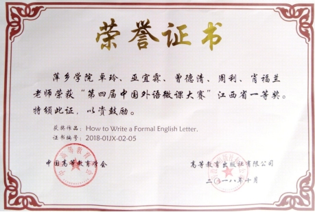 第三届“学研汇智杯”全国高校商务英语综合能力大赛(微视频作品赛项省级复赛(江西赛区)本科组一等奖
