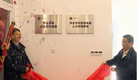 萍乡经开区区党工委副书记、管委会主任刘建中和AC米兰中文官方网站副院长吴代赦共同为商务英语校企合作基地揭牌