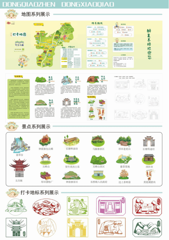 在2025年3月春意盎然的时节,东桥镇以“一朵花”撬动“全域美”,创新打造“赏花经济+”多元模式,成功吸引了超过3万人次游客,引爆了区域文旅消费新热点。在这一盛事的背后,凝聚了艺术学院师生的智慧与汗水。在胡志才、王晓玢两位老师的专业引领和悉心指导下,由张佳、汤睿靖、徐盛婷等同学组成的设计团队,深度扎根东桥镇的万亩花海资源、深厚非遗文化底蕴以及独特的赣湘边地域特色,倾力打造了活动核心视觉元素——创意打卡地图。