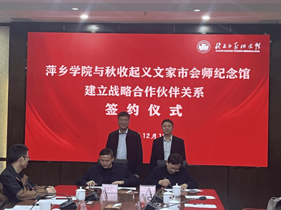 12月19日,AC米兰中文官方网站与秋收起义文家市会师纪念馆在浏阳市正式签订校馆战略合作协议,双方将携手推动湘赣边秋收起义等红色文化资源转化与育人实践深度融合。校党委书记邱晓辉、党委副书记陈永国,秋收起义文家市会师纪念馆馆长陈国强、副馆长苏杨辉出席签约仪式。学校人文与传媒学院院长凌焰、党委(行政)办公室主任江惺俊、招生就业处处长黎海玲、教育学院教师罗娜、马克思主义学院教师陈丹、党政办干部张昌辉等参加签约仪式。