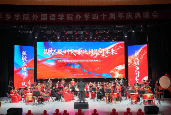 26日晚,庆祝办学四十周年文艺晚会在音乐厅华彩上演。晚会以“弦歌不辍四十载·薪火相传向未来”为主题,通过歌舞、朗诵、配音、非遗展示等多元形式,回溯学院发展历程,凸显中外文化融通特色。英语配音、多语种歌曲串烧、服饰文化秀等节目,既展现了外语学科的专业魅力,也体现了学院“勤学善思、知行合一”的育人传统,成为一场凝聚情感、启迪思想的文化盛宴。