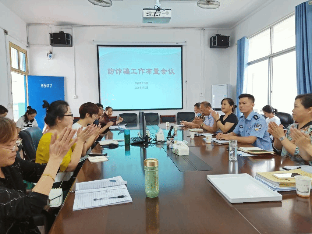为创建平安校园,2020年6月2日中午12:50分,学前教育学院在四如楼会议室召开“防诈骗”工作布置会议,萍乡市公安机关东大派出所分管业务的彭副所长被邀为大家进行“防诈骗”专题宣讲。会议由胡艳维书记主持,学前教育学院班子成员及全体辅导员、班主任参加。