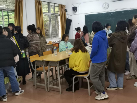 团总支学生分会成员对相应的教室进行布置后,由门口招待的学生干部引导参加面试的同学到各自所需的教室。各个教室的招聘单位向同学们介绍本单位幼儿园各项咨询,包括教师岗位、工资、保障制度等内容,同时向有意向者讲解本次面试的内容与规则,给予时间准备。在各单位面试教室中,竞聘者依次排队进行面试,根据面试情况,招聘单位进行打分并聘用得分较高者。每个招聘单位的教室里都有我院学生会干部帮忙维持秩序、解答大家的疑难问题,并对各单位面试成功并签约的同学进行登记,及时统计数据。我院需要实习与就业的同学们在学生干部的引导下,及时了解各个招聘单位,并依据自己的需求进行面试,选择自己心仪的工作单位。