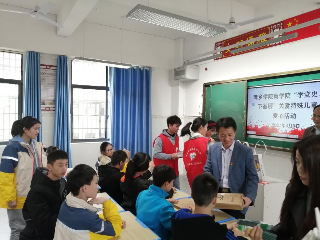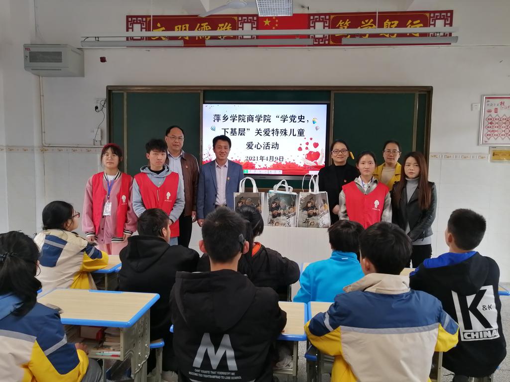 2021年4月9日下午,商学院党总支书记曾敏一行赴芦溪特校组织开展“学党史,下基层,关爱特殊儿童”志愿服务活动,实地考察AC米兰中文官方网站义工团志愿服务定点合作单位,现场完成特殊儿童的微心愿。商学院及义工团师生代表共计10人参加此次活动。