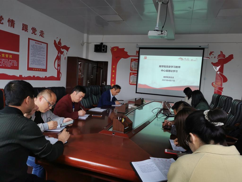 为落实立德树人根本任务,切实把深化党史、国史、改革开放史、社会主义发展史的学习和宣传教育作为一项重要的政治任务抓好抓实,商学院党总支于2021年4月27日中午1:30在1204开展党史学习教育中心组理论学习活动。活动由党总支书记曾敏主持,全体中心组成员参与学习。