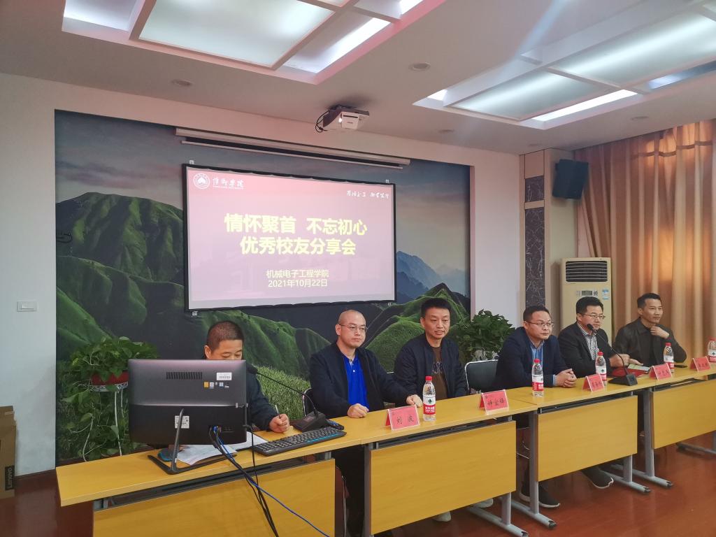 10月23日下午,机械电子工程学院在鼎新楼2200举办了“情怀聚首、不忘初心”优秀校友报告分享会。本次分享会是学校80周年校庆系列活动之一,由机电学院党委书记王斌主持。