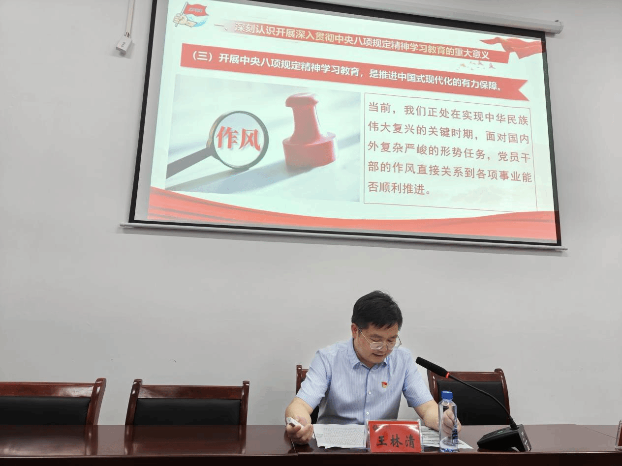 在“严守中央八项规定精神,争做新时代合格党员”专题党课上,王林清部长紧扣主题,紧密结合学校发展战略与学生成长规律,以鲜活案例为切入点,为党委组织部教工党员及学院师生带来一场理论与实践深度融合的精彩课程。党课中,他旁征博引、深入浅出,引导学生坚定理想信念,厚植家国情怀,激励青年学子将个人奋斗融入国家发展浪潮,在新时代新征程中勇担使命、展现作为。