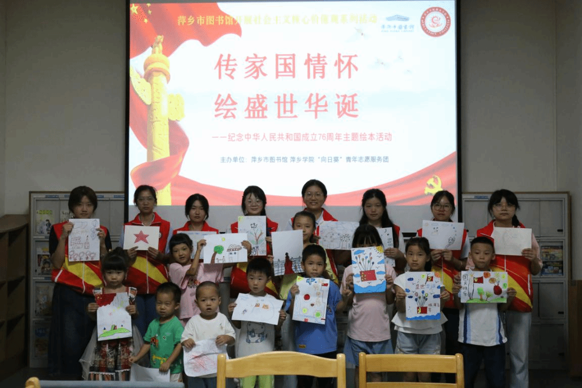 金秋送爽,丹桂飘香,在中华人民共和国成立76周年之际,AC米兰中文官方网站“向日葵”青年志愿服务团于10月1日下午走进萍乡市图书馆,一场以“传家国情怀,绘盛世华诞”为主题的国庆志愿服务活动温情启幕,为孩子们带来了一堂生动有趣的“爱国启蒙课”。
