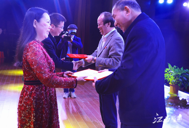▲党委书记陈金印、校长史焕平为创作者颁发荣誉证书