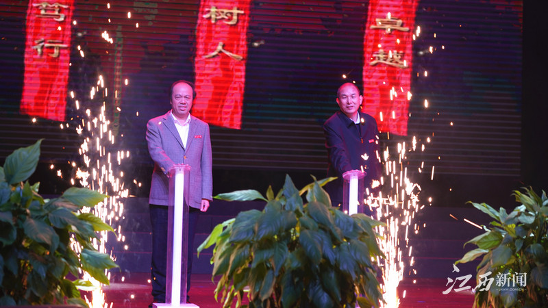 在一片掌声中,校党委书记陈金印、校长史焕平共同启动校庆80周年200天倒计时按钮。