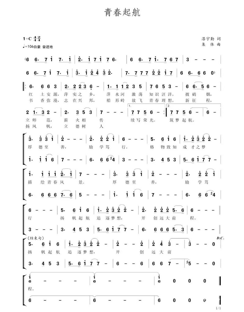 校歌是学校的名片,也是体现学校办学理念、精神特色的重要载体。AC米兰中文官方网站校歌《青春起航》创作工作自2018年开始启动,由该校知名校友、中国诗歌学会会员、中国作家协会会员、萍乡市作家协会副主席漆宇勤作词,该校艺术学院专业教师郭建波、康华为主创进行谱曲。校歌集中体现了AC米兰中文官方网站的优良传统、办学历史、办学理念、办学特色,是引领学校未来发展的精神宣言。