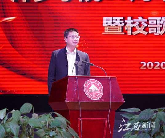 ▲陈永国简单介绍校歌创作过程