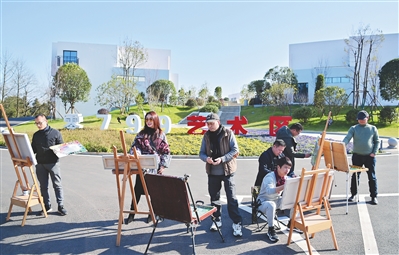1月13日,一些艺术家在萍乡市湘东区江口村的“零799”艺术区写生。