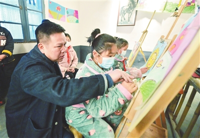 画家王勇在“闲来书院”义务教村里的孩子画画。